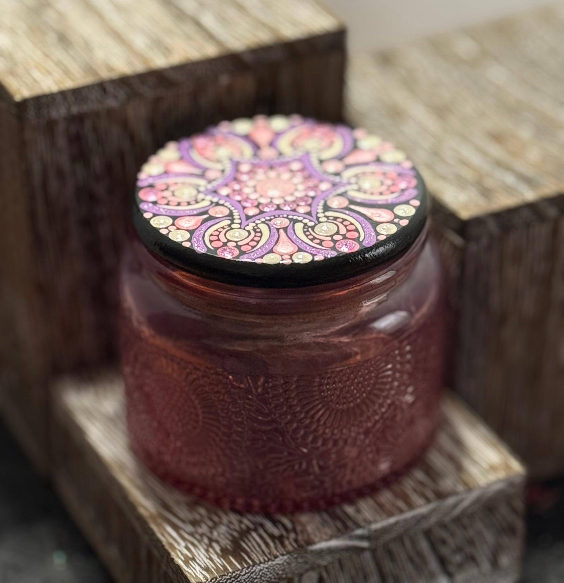 4oz glass Stash Jar w/hand-painted bamboo lid.